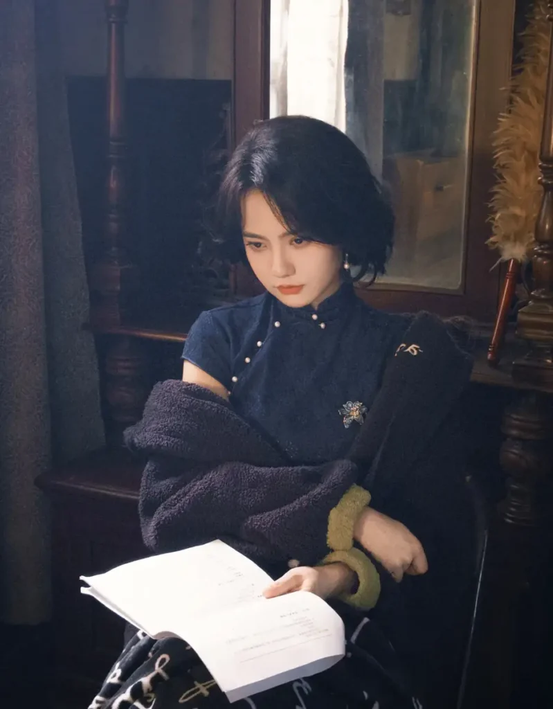 In addition to her beautiful attire, Jiang’s curly short hair added a contemporary twist to her overall look. This hairstyle not only reflects her cool and capable persona but also illustrates her ability to blend tradition with modernity. The combination of the cheongsam and her stylish hair sets a fashion benchmark that many aspiring actresses may look up to.
