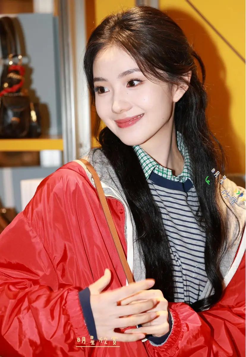Leaked photos from the event show Liu Haocun embodying a youthful vibe with her half-tied hairstyle, which frames her face perfectly. The combination of her stylish striped shirt and her sweet smile creates a captivating look that resonates with her fans. The images reveal not just her fashion choices but also the gentle gaze she directed towards the audience, highlighting her approachable personality.