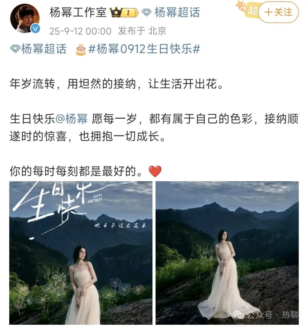 However, the day carried a heavy emotional weight. Just one day before her birthday, news broke that actor Alan Yu (于朦胧), a close friend of Yang Mi, had passed away after falling from a building. He was only 37. In the quiet hours of the night, Yang Mi posted a brief, heart-wrenching tribute: “Si Ge, I hope you are well in another world.”