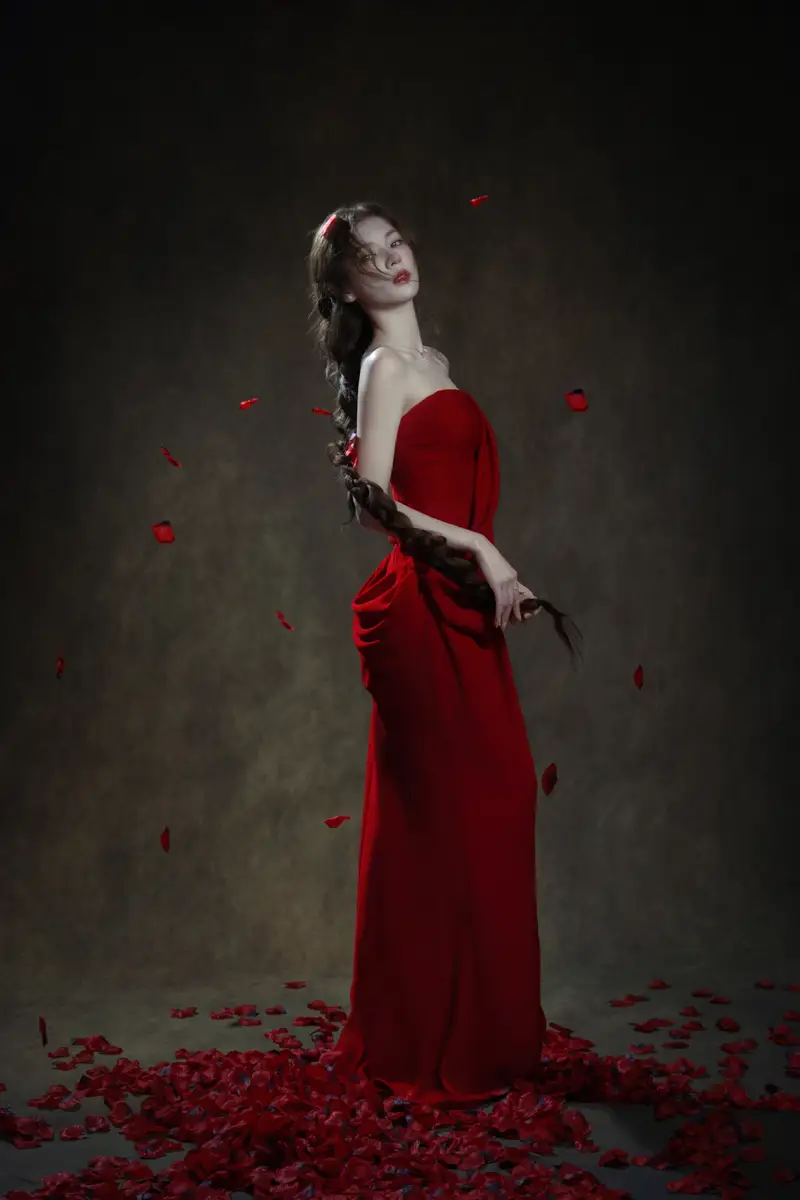 On September 14th, the celebrated actress Zhang Yuxi made headlines by attending a music event dressed in a striking red dress. This eye-catching outfit not only highlighted her dynamic personality but also served as a canvas for an imaginative transformation.