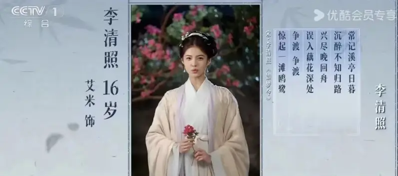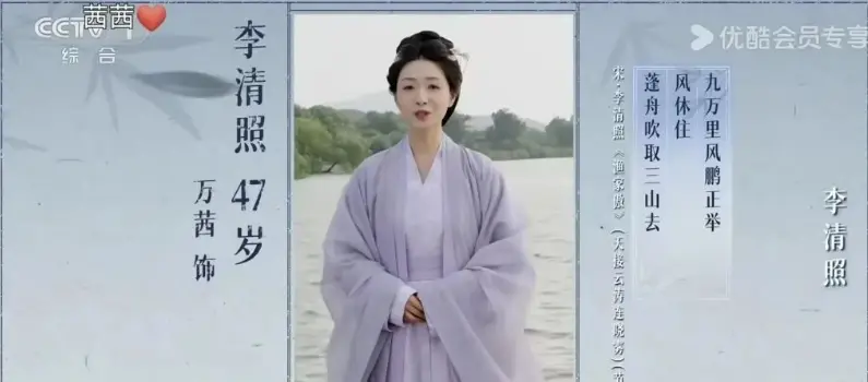 The large-scale cultural program 《宗师列传•大宋词人传》- “Master Legends: Poets of the Song Dynasty” has revealed the casting for three stages of Li Qingzhao’s life: Amy portrays her youth, Wan Qian plays her middle years, and Tao Huimin represents her in old age. Each actress aligns remarkably well with the temperament and emotional depth of Li Qingzhao at her respective life stage.