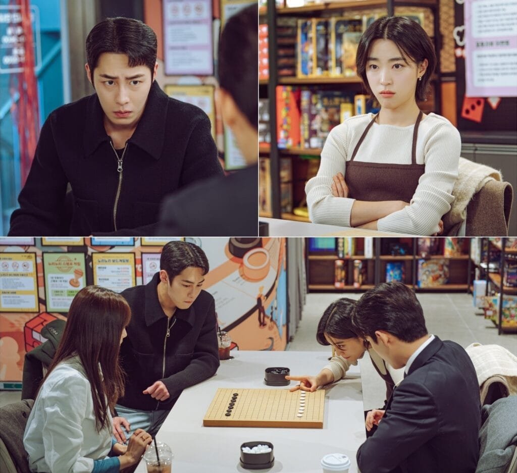 In the new stills, Baek Do Ha, Ha Gyeong, Seo Su Hyeok (Kim Gun Woo), and Yoon So Hee (Kwon Ah Reum) sit down for a casual game of alkkagi. What should have been light fun quickly transforms into an intense emotional showdown.