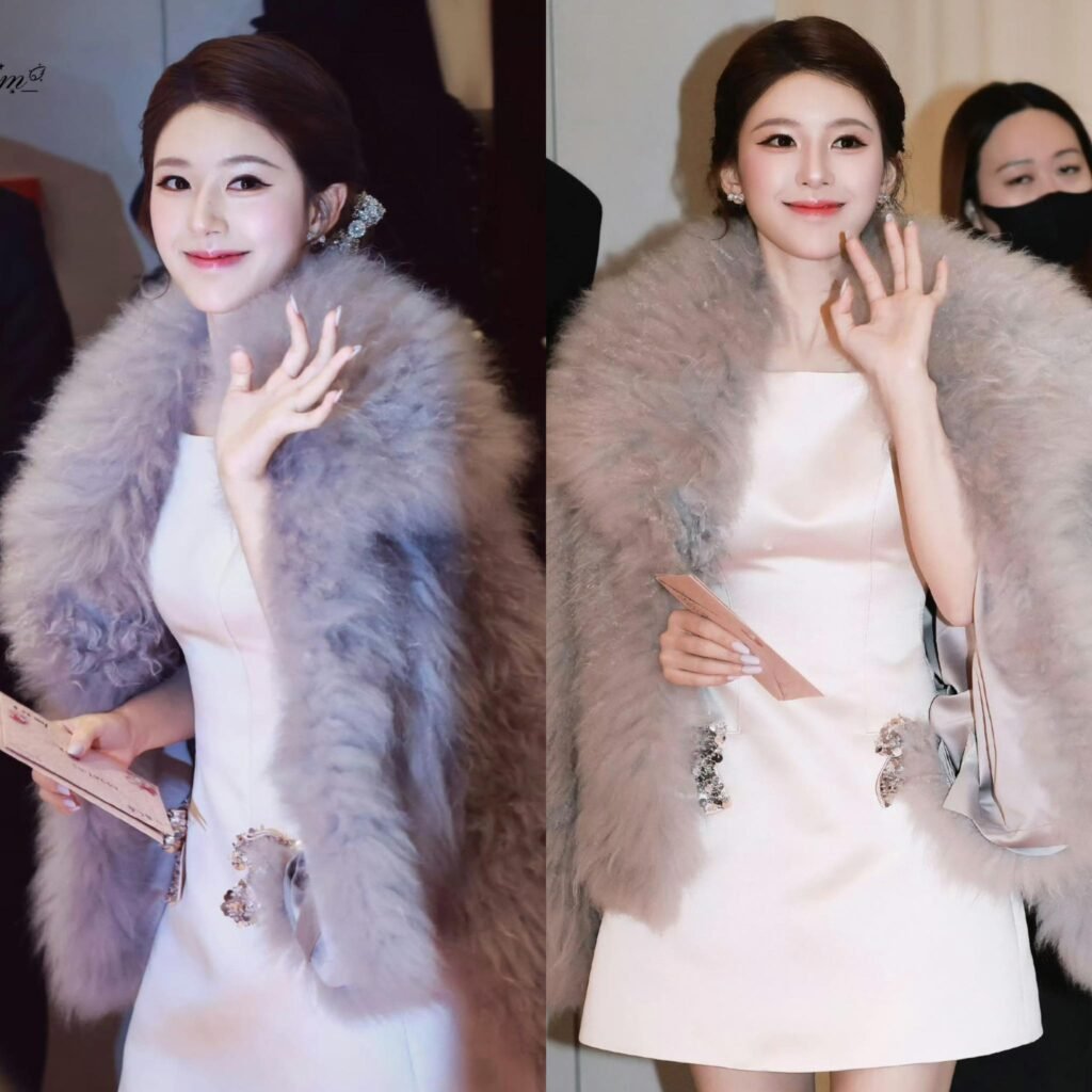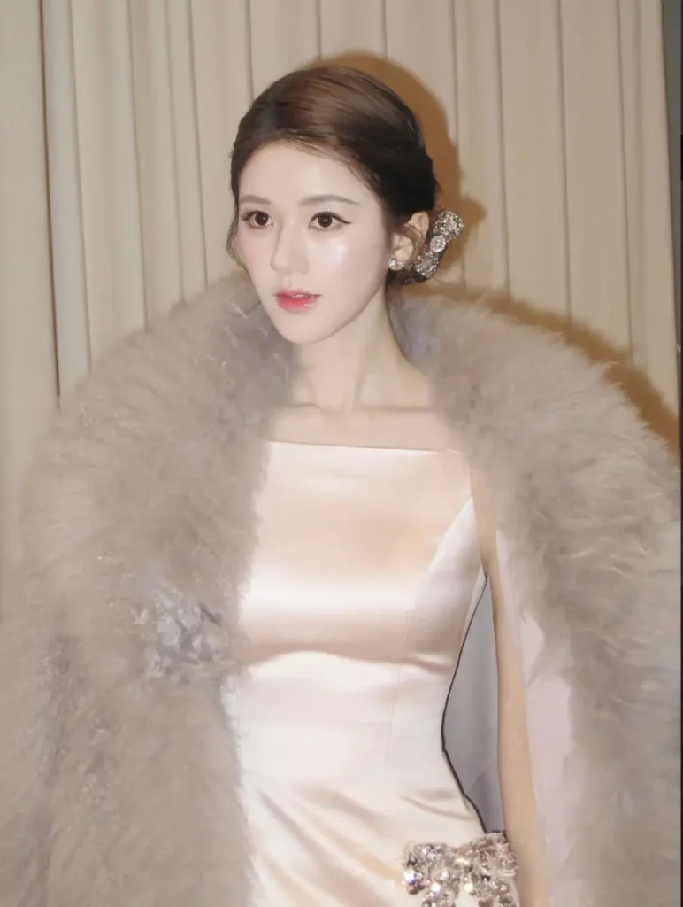 Additionally, Zhao Lusi’s updo paired seamlessly with her fur ensemble, creating an image that felt lavish but not overly extravagant. The combination of the textured updo and the soft elegance of fur produced a chic, high-end aesthetic. This well-balanced styling not only showcased her keen understanding of fashion but also highlighted her strong presence in the style landscape.