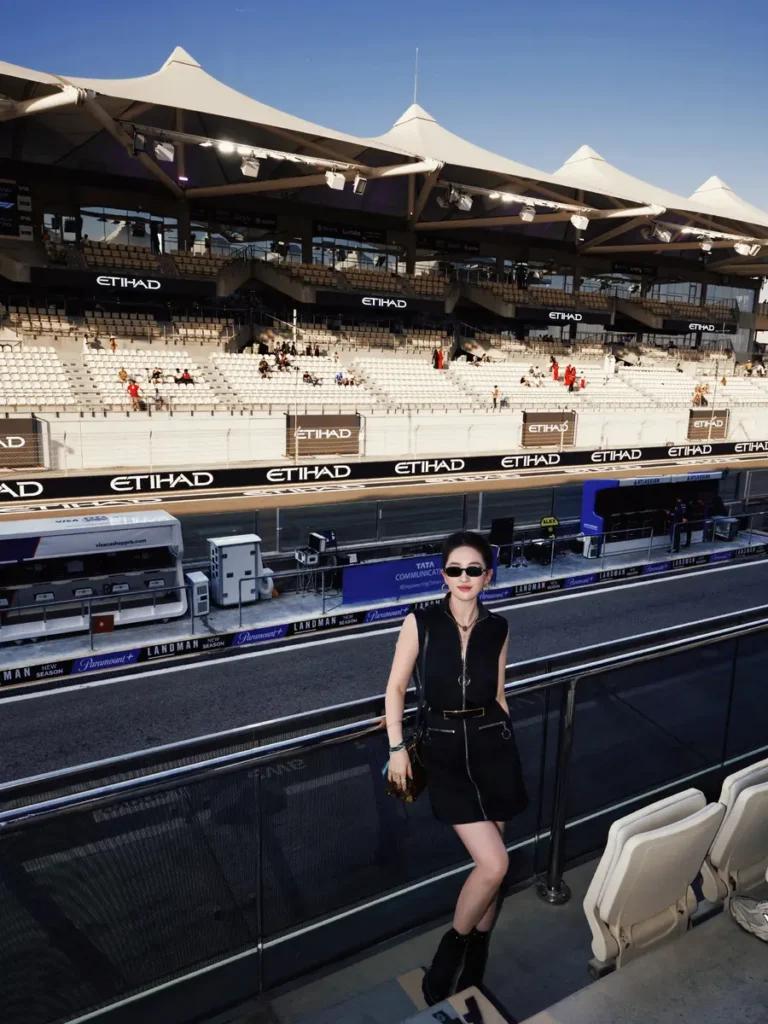 Actress Liu Yifei made a striking appearance at the Abu Dhabi F1 Grand Prix season finale, drawing attention with her effortlessly stylish all-black outfit. Wearing a high ponytail and sunglasses, she embodied a cool, modern aesthetic that stood out against the high-energy backdrop of the racing event.