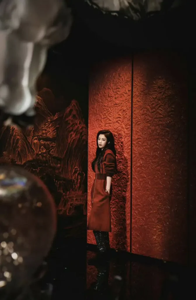 The bold color choice of Chen Lijun’s ensemble was purposeful, aiming to convey confidence and sophistication. The deep hue of the suede coat complemented her figure perfectly, emphasizing her upright posture which showcased her commanding presence in the fashion realm.