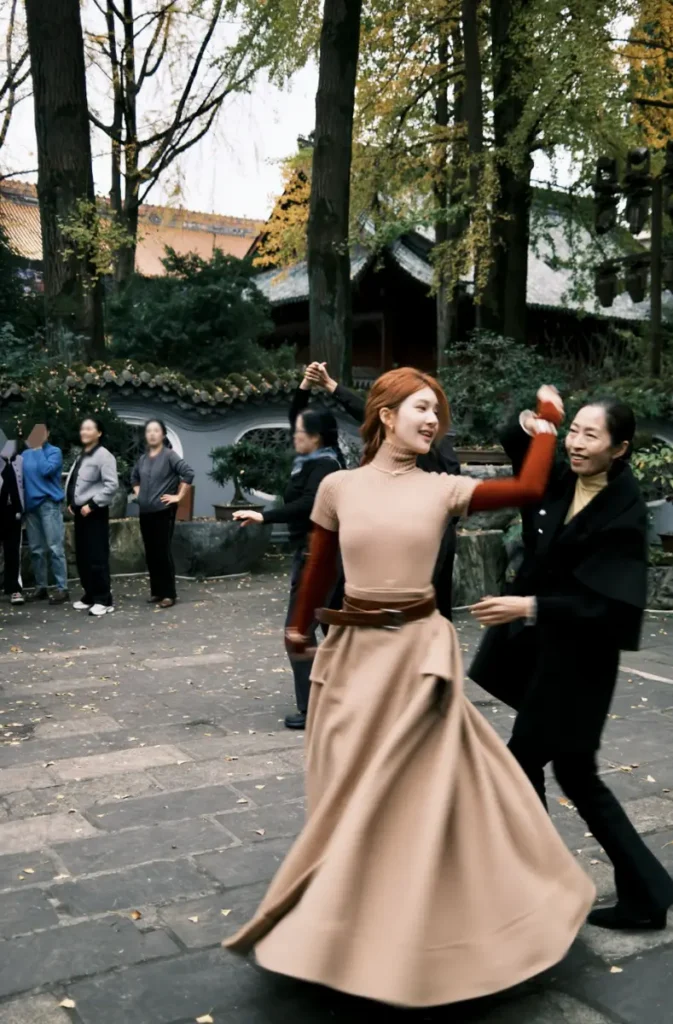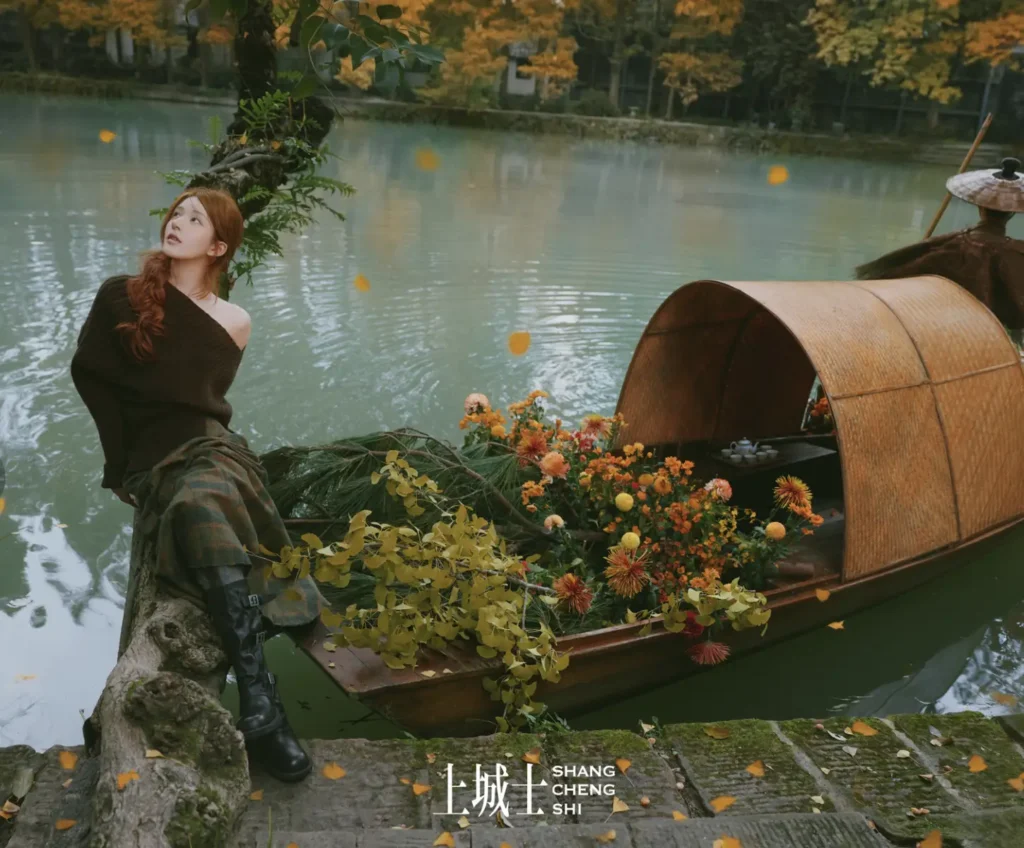 Zhao Lusi’s choice of attire and setting not only highlights her natural grace but also symbolizes the peaceful allure of the season. Surrounded by vibrant ginkgo leaves that contrast beautifully with her attire, she emanates a serene charm that draws the observer into her world. Her gentle demeanor and the picturesque backdrop contribute to an image that feels both timeless and moving.
