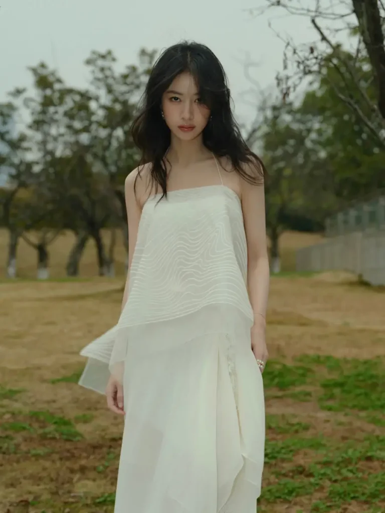 In a world often dominated by vibrant colors and bold patterns, Zhou Yutong’s choice of a white dress stands out as a symbol of simplicity and sophistication. The minimalist approach emphasizes her natural beauty and allows the viewer to appreciate the delicate details of the fabric and design. This embodiment of pure elegance is characteristic of art-house cinema, where every element plays a significant role in storytelling.