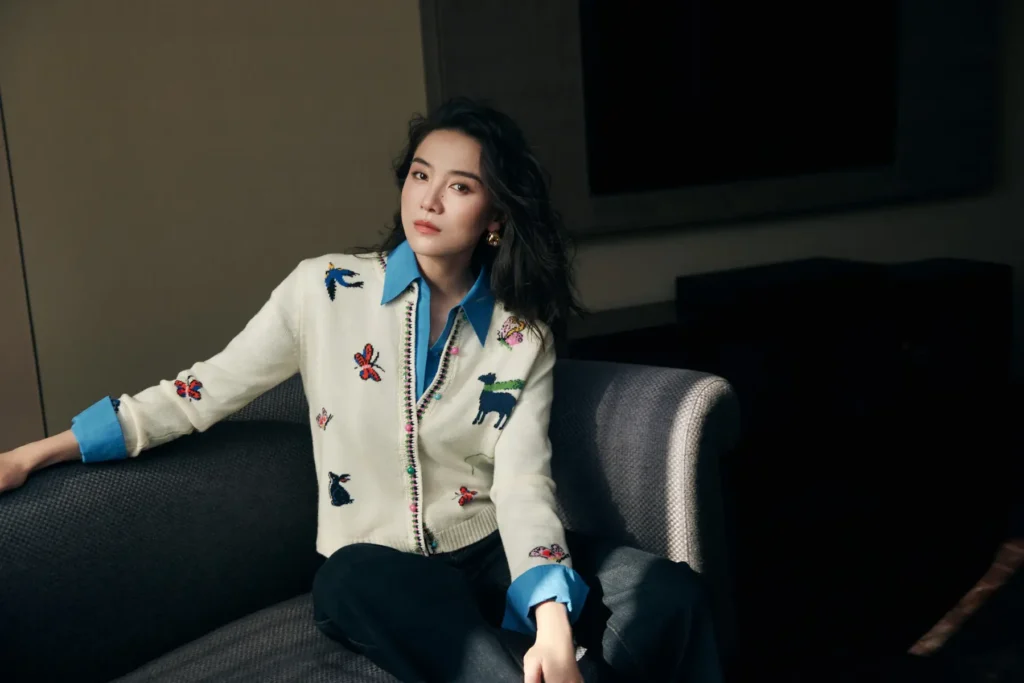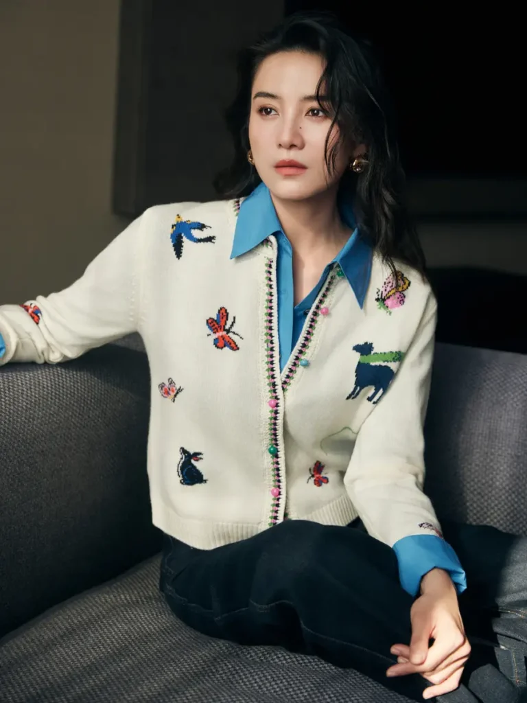 In conclusion, Song Jia’s latest photo release is a testament to her status as a style icon. Her v-neck printed top and jeans not only highlight her physical attributes but also reinforce her fashion-forward image.