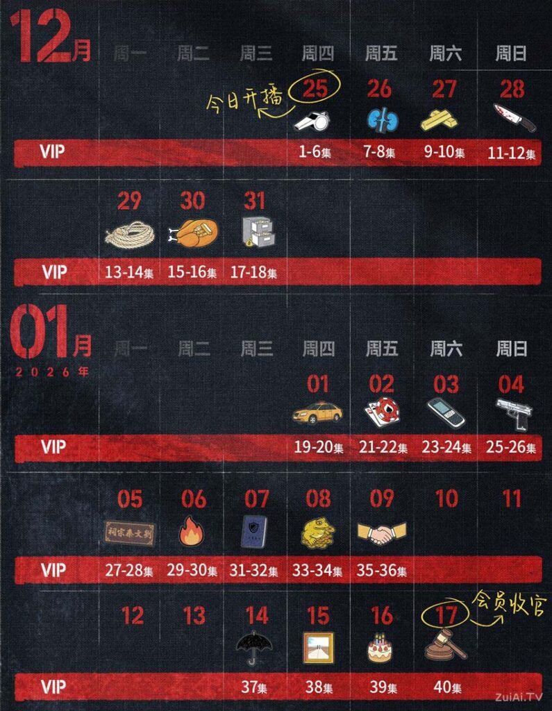 Regarding its release schedule, subscribers will receive the first six episodes at 6:00 p.m. on December 25, followed by two new episodes each evening. Updates will pause from January 10 to January 13, 2026, before resuming on January 14 with one episode per night. The final episode is scheduled to air on January 17. Non-subscribers will have access to two episodes starting at 6:00 p.m. on December 25, with one episode released each evening for a limited viewing period, and the series is expected to conclude for non-members on February 1, 2026