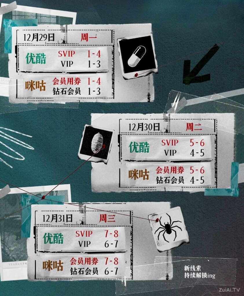 For viewers with a subscription, the first three episodes will be released at 12:00 p.m. on December 29, followed by two new episodes daily. The finale is expected to air on January 7, 2026. SVIP subscribers will have access to one additional episode in advance on each update day. Non-subscribers will receive one episode starting at 12:00 p.m. on December 29, with daily updates available for a limited viewing period, and the series is projected to conclude on January 18, 2026.