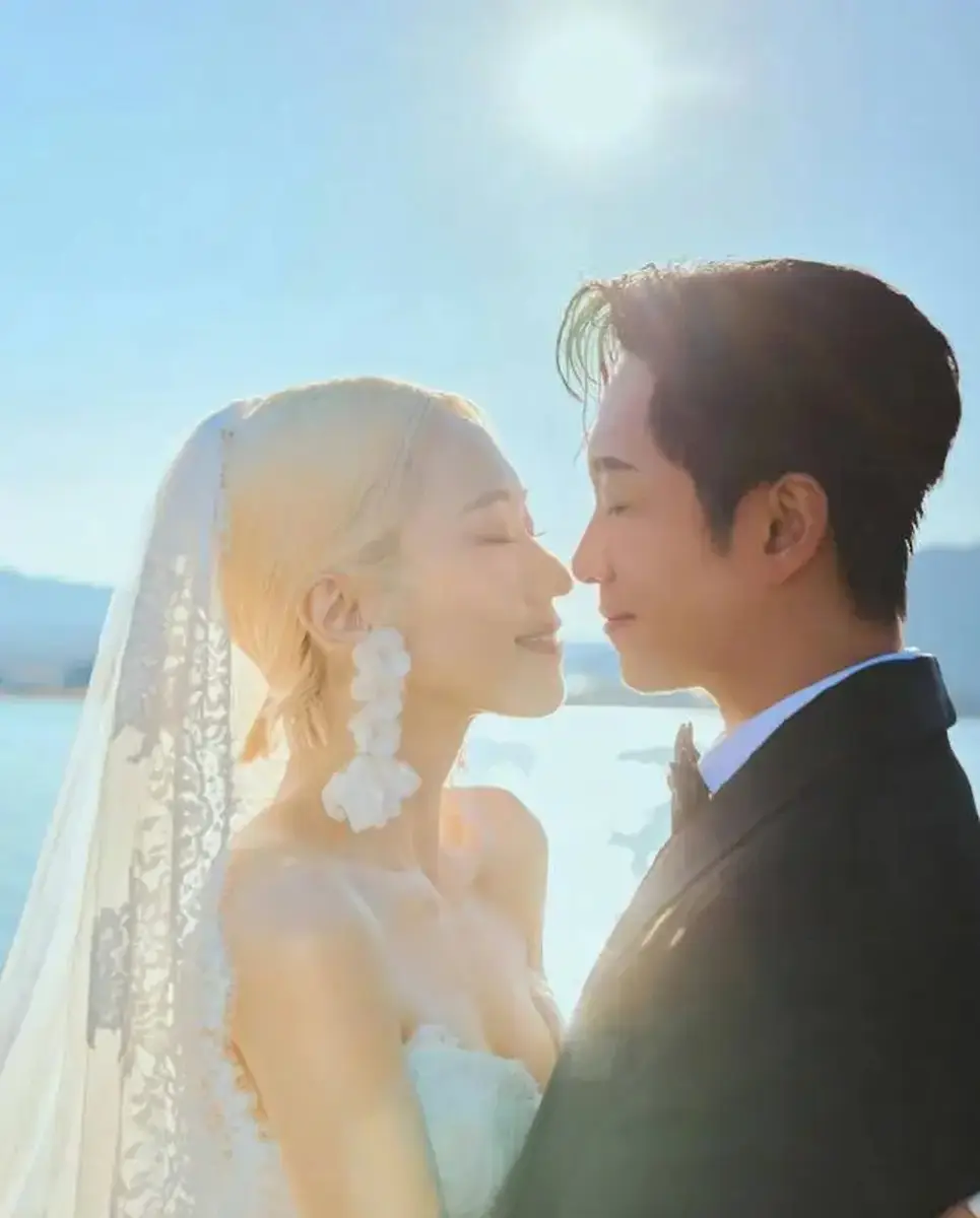 In the released photos, both Chen Han Dian and Lulu wear understated yet elegant wedding attire. Rather than dramatic poses, the focus is on natural interaction—leaning closely together, gently touching noses, and exchanging loving gazes. These quiet gestures convey a sense of closeness and mutual understanding, allowing their emotions to take center stage.