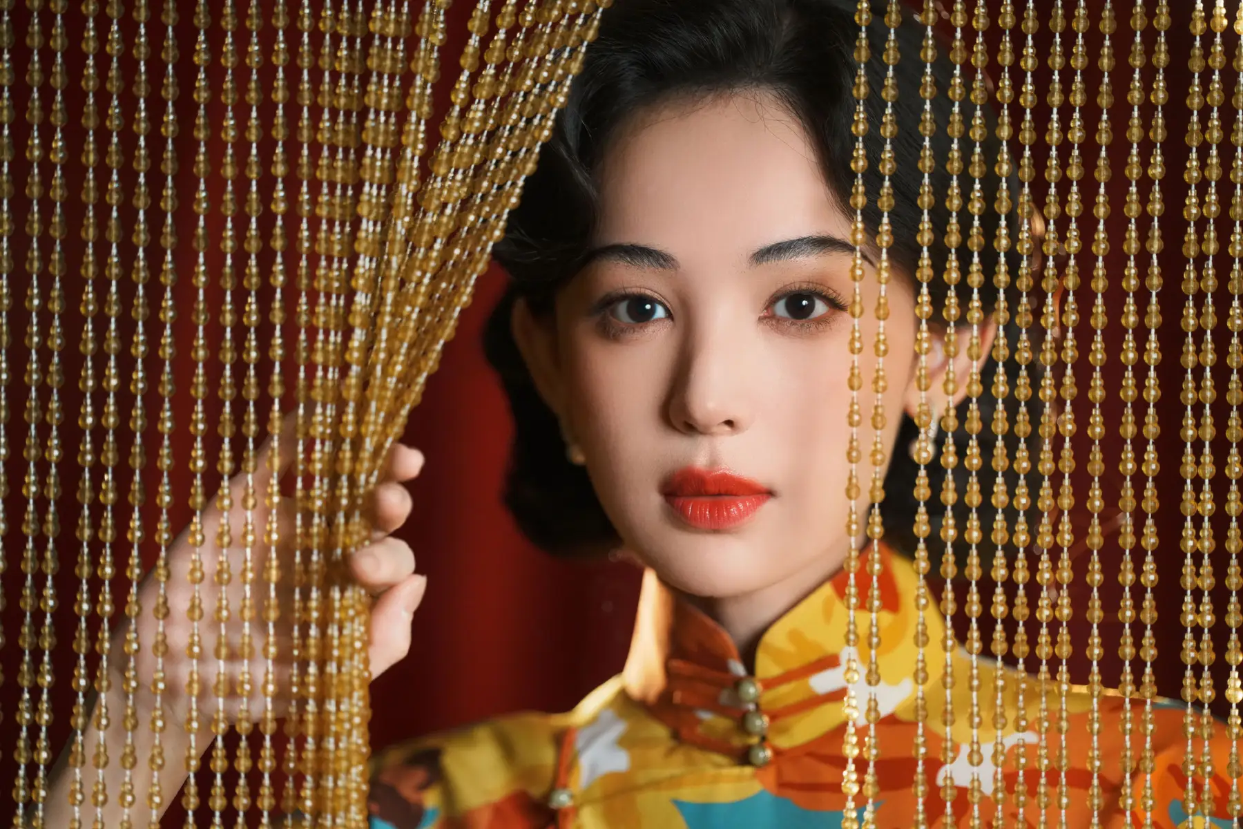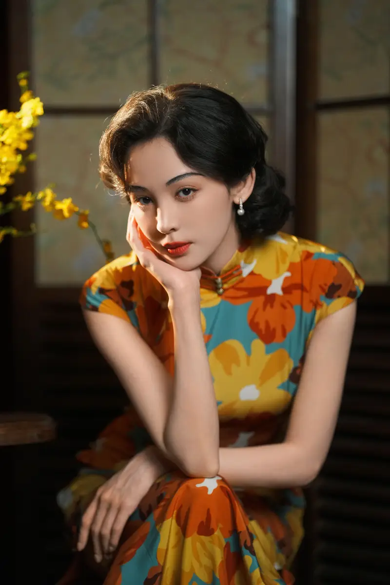 Gulnazar Shines in a Vibrant Qipao, Radiating Grace and Timeless Elegance