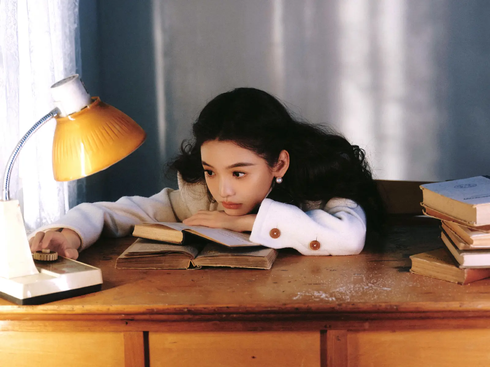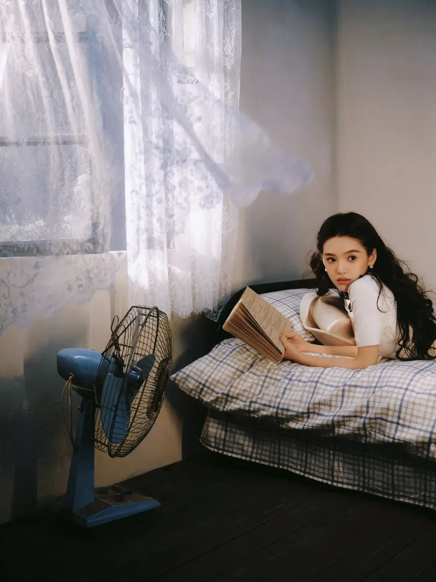 In the photos, Zhang Ruonan adopts a simple but carefully styled look. Resting her chin on one hand, she exudes a calm and elegant demeanor, while a subtle wink toward the camera adds a playful note that brings the image to life. Her side profile, captured as she leans quietly by a window, highlights her delicate features and creates a serene, almost nostalgic mood, as if time has slowed around her.