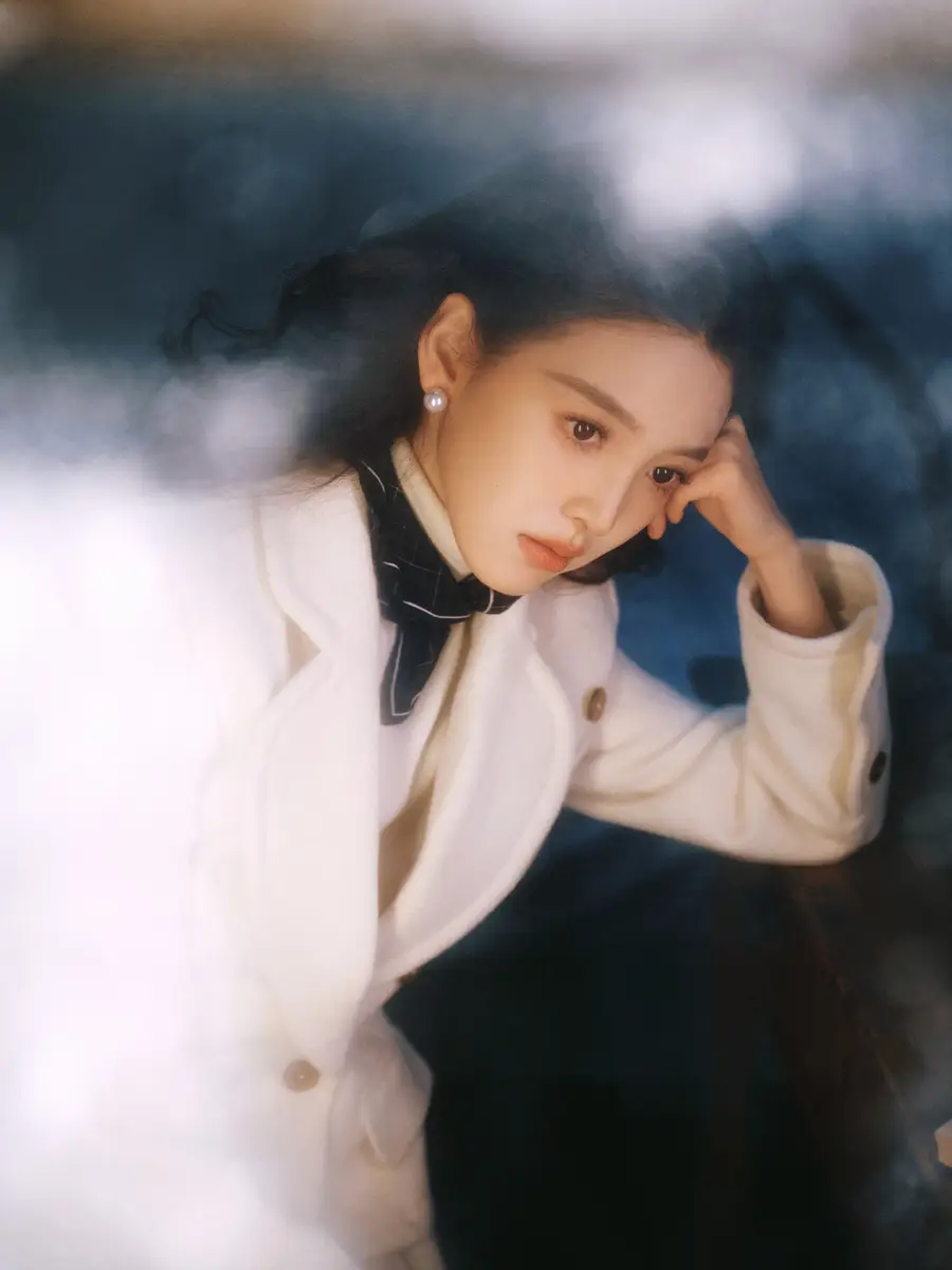 In the photos, Zhang Ruonan adopts a simple but carefully styled look. Resting her chin on one hand, she exudes a calm and elegant demeanor, while a subtle wink toward the camera adds a playful note that brings the image to life. Her side profile, captured as she leans quietly by a window, highlights her delicate features and creates a serene, almost nostalgic mood, as if time has slowed around her.
