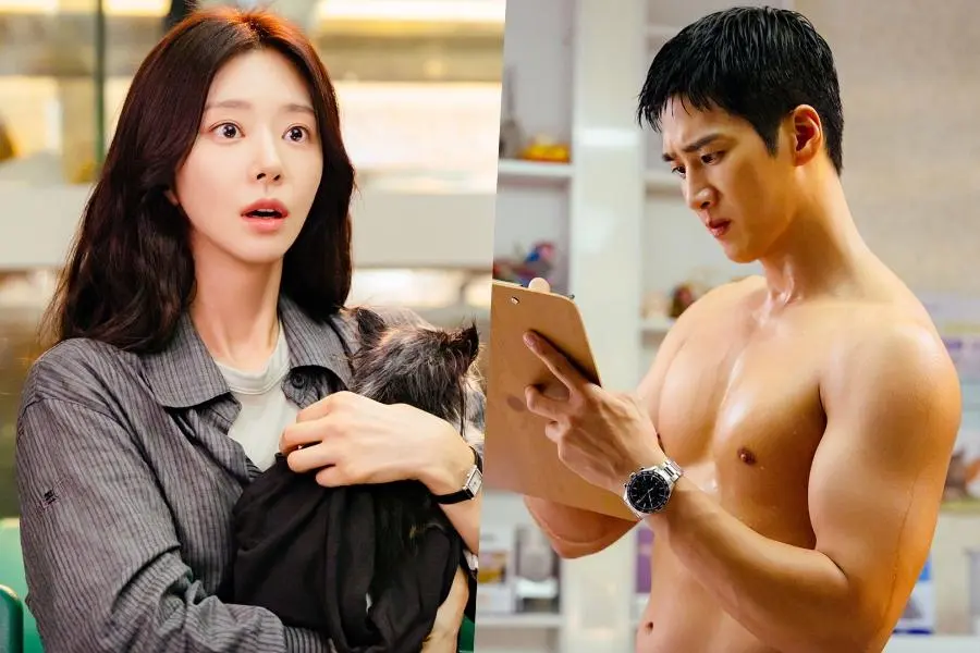 Another set of images presents a striking contrast. Yoon Bom is seen holding a puppy, while a shirtless Seon Jae Gyu concentrates on writing something. The reason behind his unexpected appearance remains unclear, adding intrigue to the scene. The contrast between his intense demeanor and the unusual situation highlights a different, more complex side of his character, one that Yoon Bom is encountering for the first time.