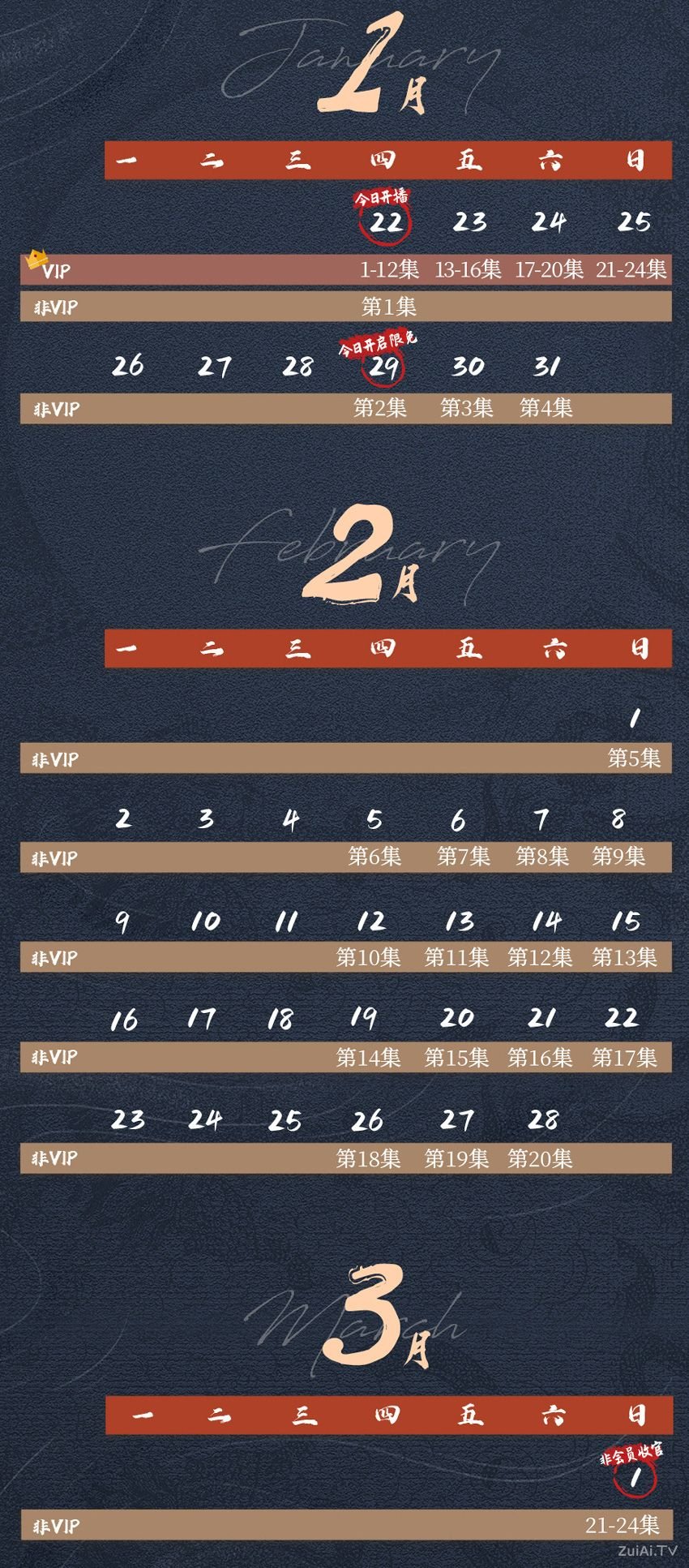 According to the official release schedule, subscribers will receive an initial batch of 12 episodes at 12:00 PM on January 22, followed by four episodes released daily, with the finale airing on January 25. Under an alternative release plan, subscribers will see one episode drop at noon on January 22, after which new episodes will be released daily from Thursday to Sunday starting January 29. The series will conclude on March 1 with a four-episode finale.