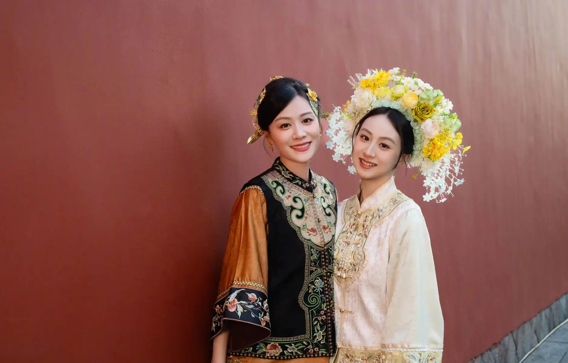 Rather than relying on elaborate poses or heavy styling, the images focus on natural expressions and quiet interaction. The floral hairpins serve as a subtle accent, adding a touch of traditional Chinese beauty while enhancing the softness and harmony of the overall composition.