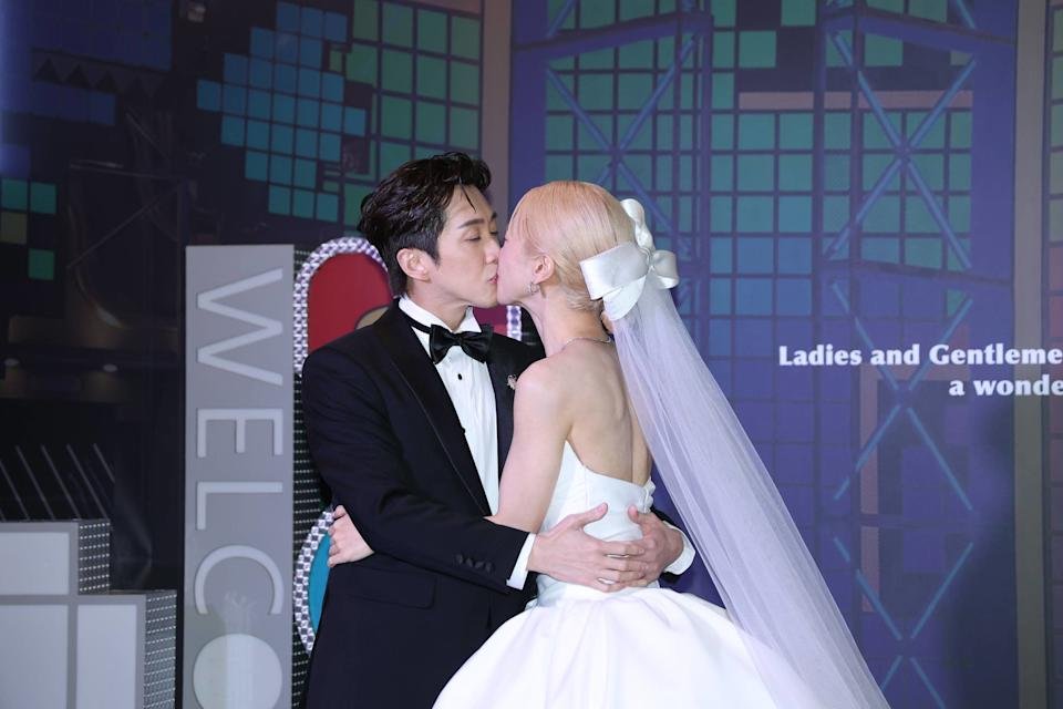 One of the most talked-about moments occurred during a ceremonial segment that prompted the newlyweds to seal the moment with a kiss. After a brief moment of shyness, Lulu leaned in and kissed Chen Handian herself. To accommodate cameras from multiple angles, the couple repeated the gesture several times, each kiss lasting a few seconds. The scene unfolded naturally and playfully, capturing the joy and intimacy of the occasion.