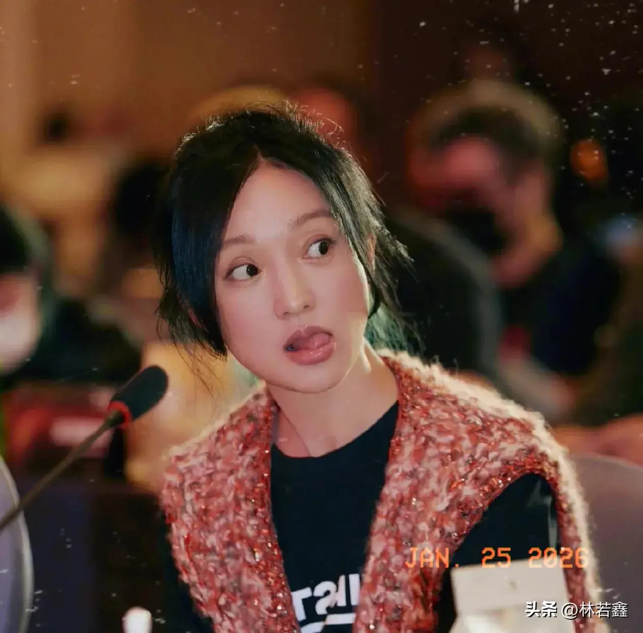 From the footage, some viewers noted that her face appeared slightly fuller than before, but her overall complexion looked healthy and vibrant. Although the late-night schedule suggested a demanding itinerary, Zhou Xun remained in good spirits. When she noticed people taking photos, she responded openly, striking a few casual poses and smiling warmly at the camera. Her natural, unforced smile conveyed a sense of ease and youthful energy that many found especially appealing.