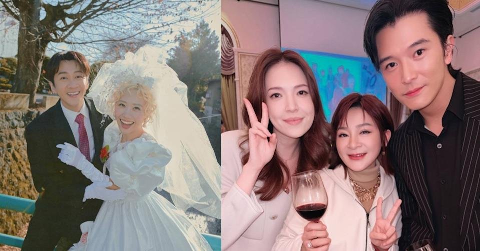 During the banquet, the couple posed for photos with friends including Wang Tsai Hua and Pan Jo Di. Shun flashed a cheerful victory sign toward the camera, while Chiu smiled softly with a glass of red wine in hand. Their coordinated light-and-dark outfits stood out amid the crowd, making this rare post-marriage public appearance especially eye-catching.