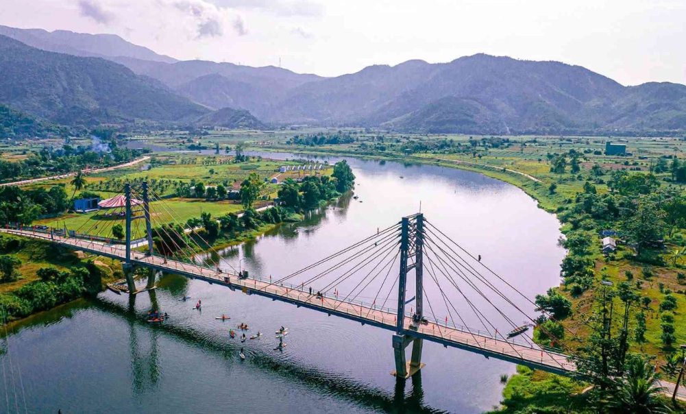 The scenery of Hoa Bac is shaped by the Cu De River winding through valleys, the surrounding green hills, and small villages scattered along both banks. In the early morning, a light mist covers the water, and the mountains appear in soft, hazy outlines, creating a sense of calm rarely found in a major tourist city. By late afternoon, warm sunlight falls over gardens and rooftops, and the entire area seems to slow down, making it an ideal setting for those who wish to step away from urban routines.