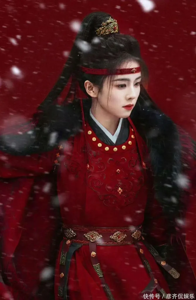In the series, Bai Lu portrays Li Peiyi, a character defined by restraint and inner resolve. Dressed in a red costume, she appears with a narrow forehead band that immediately sets the tone for the role. Rather than relying on elaborate ornamentation, the styling emphasizes simplicity, allowing the accessory to subtly frame her facial structure and enhance the sharpness of her features.