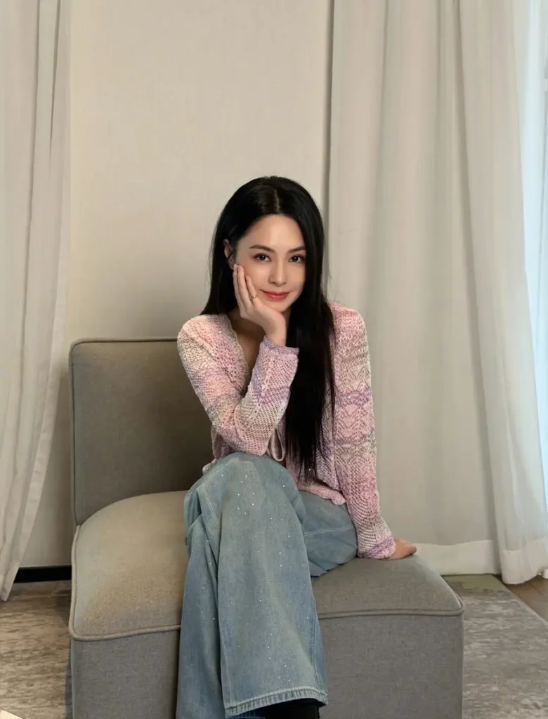 On the 30th, Gillian Chung (also known as Ah Sa) shared a new set of photos on social media, accompanied by the caption, “A day of filming vs. everyday filming.” In the images, she wears a soft pink-purple knit top paired with light blue jeans, creating a gentle and polished look that highlights her calm and natural presence.