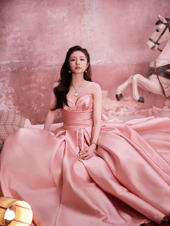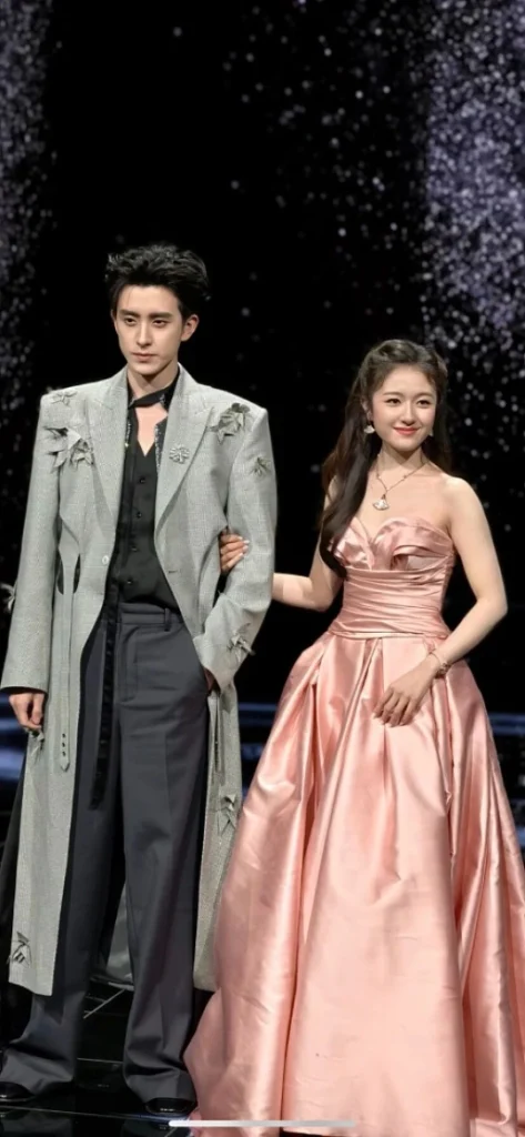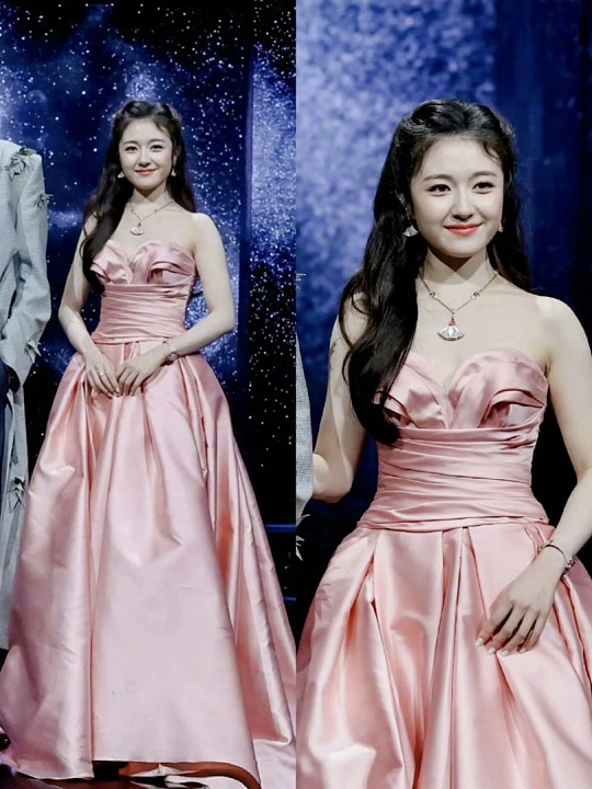 For her first appearance, Li Landi wore a pink voluminous gown by Zuhair Murad. Paired with a half-up princess hairstyle, softly framing strands, and luxury jewelry accents, the look emphasized a youthful and radiant image. Her natural makeup enhanced her clear complexion, creating a fresh and approachable presence that stood out amid the evening’s glamorous atmosphere.