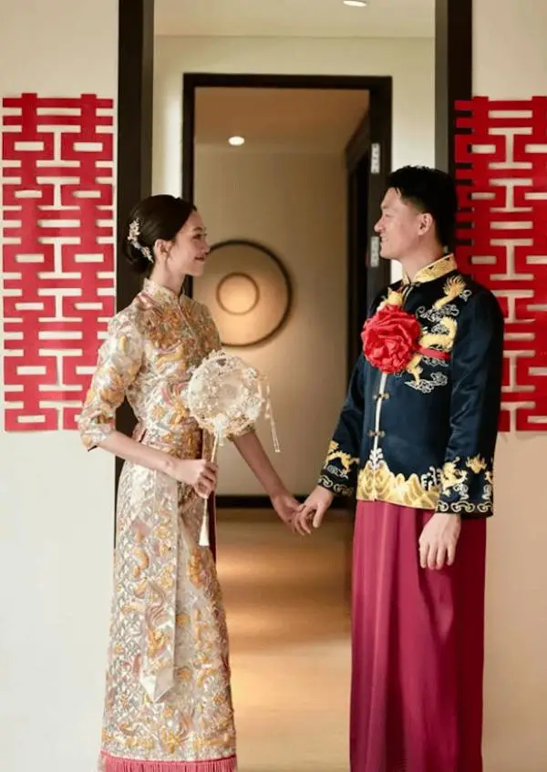 Although the wedding was held overseas, Katy Yeung and her husband adhered closely to traditional customs by carrying out a full Chinese wedding ceremony. According to the photos, all customary rituals were observed, including the hair-combing ceremony, bride’s departure, the matchmaker holding an umbrella, and tea-serving to elders. The ceremony was presented in a warm and celebratory atmosphere.