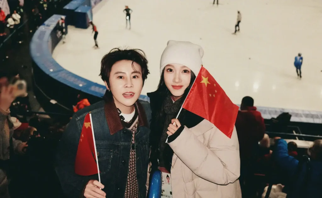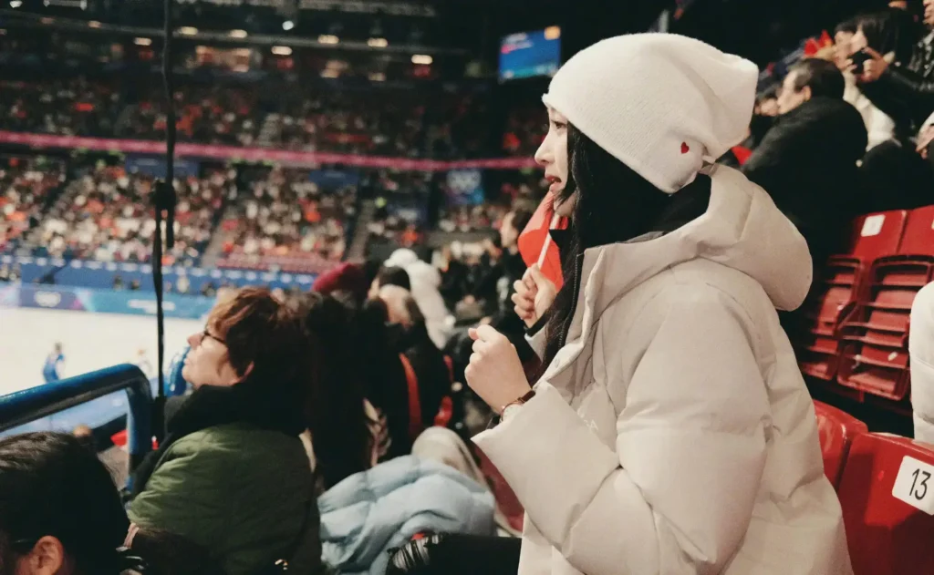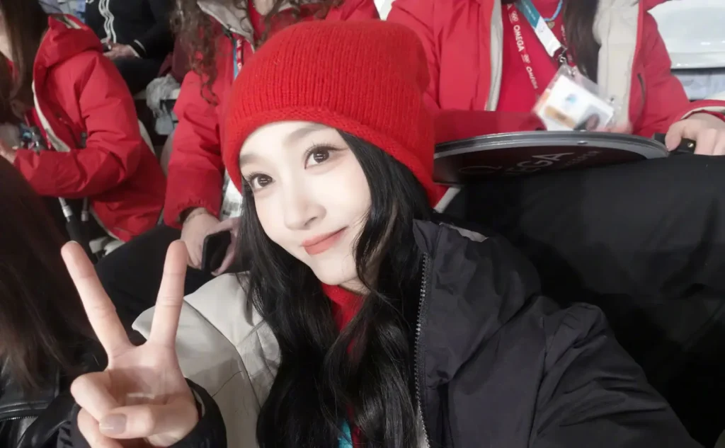 During the competition, Guan Xiaotong was seen holding the Chinese national flag and cheering enthusiastically for Team China. She watched the games with full concentration, at times clasping her hands together, clearly absorbed in the moment. She also posed for playful selfies, flashing a V sign, with her red beanie adding a lively and charming touch to her appearance.