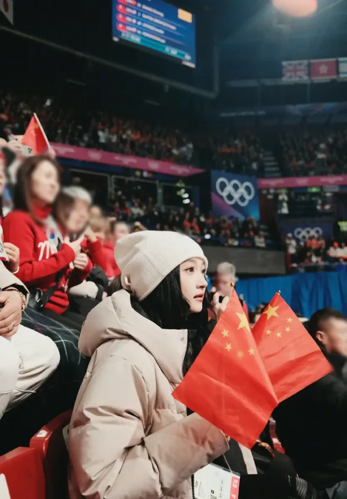 Whether calmly observing or passionately cheering, Guan Xiaotong displayed sincere engagement with the event, drawing attention for her natural demeanor and visible support for the Chinese team.