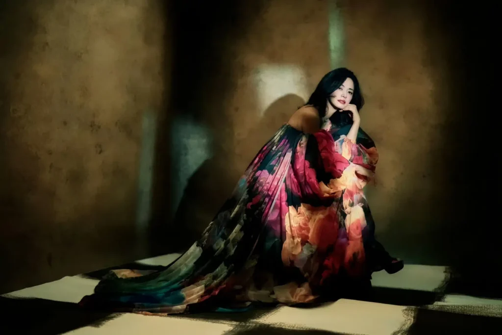 A new set of photos featuring Yao Chen in a floral-themed gown has recently been released, showcasing a bold yet refined artistic style. In the images, she wears a gown with a dramatic, painterly skirt that creates a vivid and graceful visual impact.