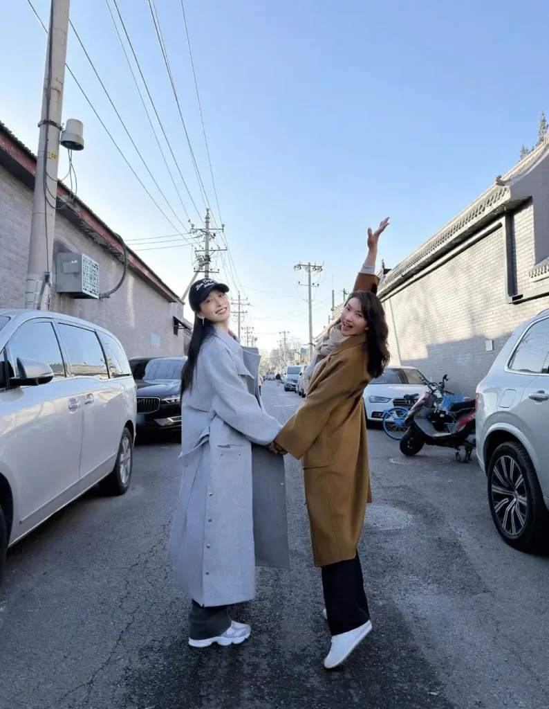 In the released photos, the two are seen embracing warmly, smiling naturally, and enjoying a leisurely stroll under the sun. The atmosphere appears calm and comfortable, capturing a rare moment of ease away from their busy schedules. Victoria Song beams with joy while holding Chen Hao, whose gentle expression complements the intimate and heartfelt interaction between them.