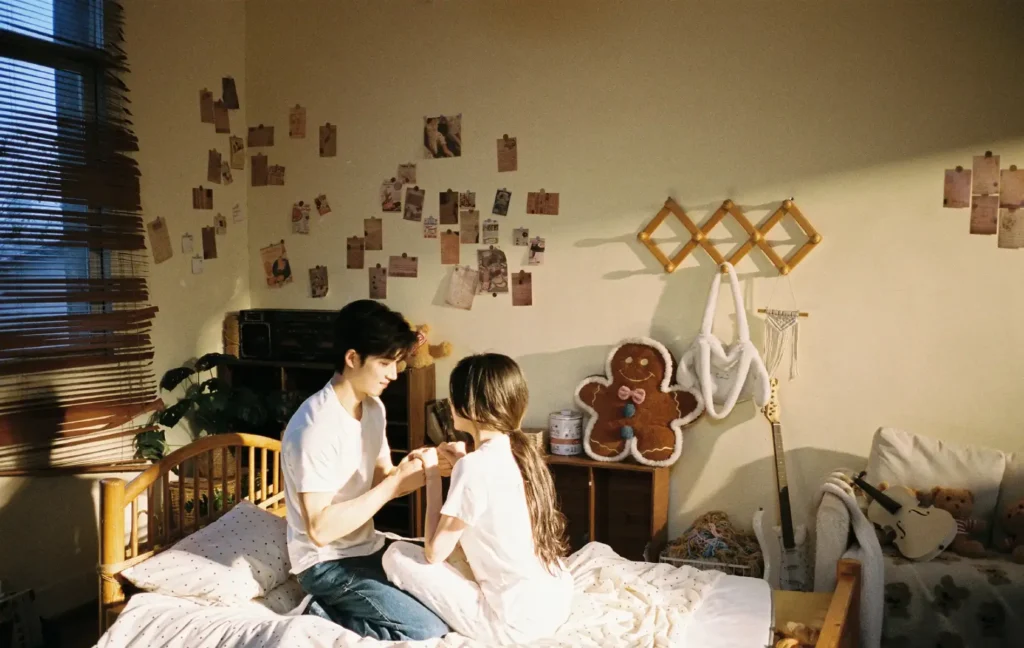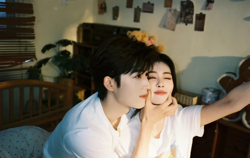 In the photos, both actors appear in relaxed, casual outfits, embracing a soft and intimate home setting. Their interactions on the bed look effortless and playful, creating a sweet, couple-like vibe that resonates with fans.