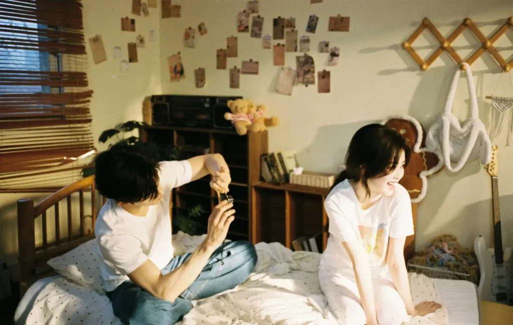 In the photos, both actors appear in relaxed, casual outfits, embracing a soft and intimate home setting. Their interactions on the bed look effortless and playful, creating a sweet, couple-like vibe that resonates with fans.