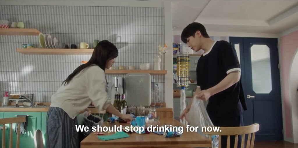 The evolving dynamic between Hyun Jin and Tae Hyung gains unexpected complexity after a night of drinking leaves them waking up in the same bed, uncertain of what transpired. While the situation initially produces embarrassment and suspicion, they ultimately realize that nothing inappropriate occurred. Instead, their candid, alcohol-fueled conversation reveals emotional honesty that subtly shifts their perception of each other. What was once a strictly practical, temporary arrangement begins to show signs of deeper emotional connection.
