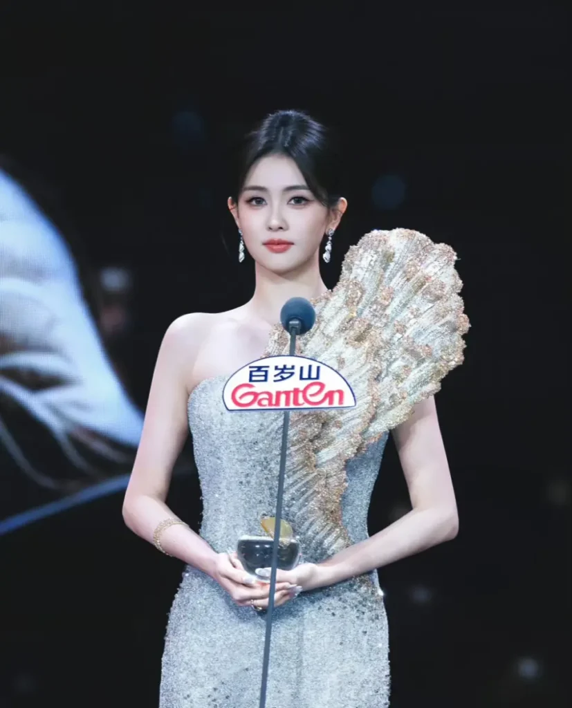 Actress Bai Lu also drew attention at the ceremony after winning the “Quality Influence Drama Star of the Year” award. Known for her lively personality, she humorously commented on her outfit during the red carpet segment, joking that it looked like she was wrapped in a blanket.