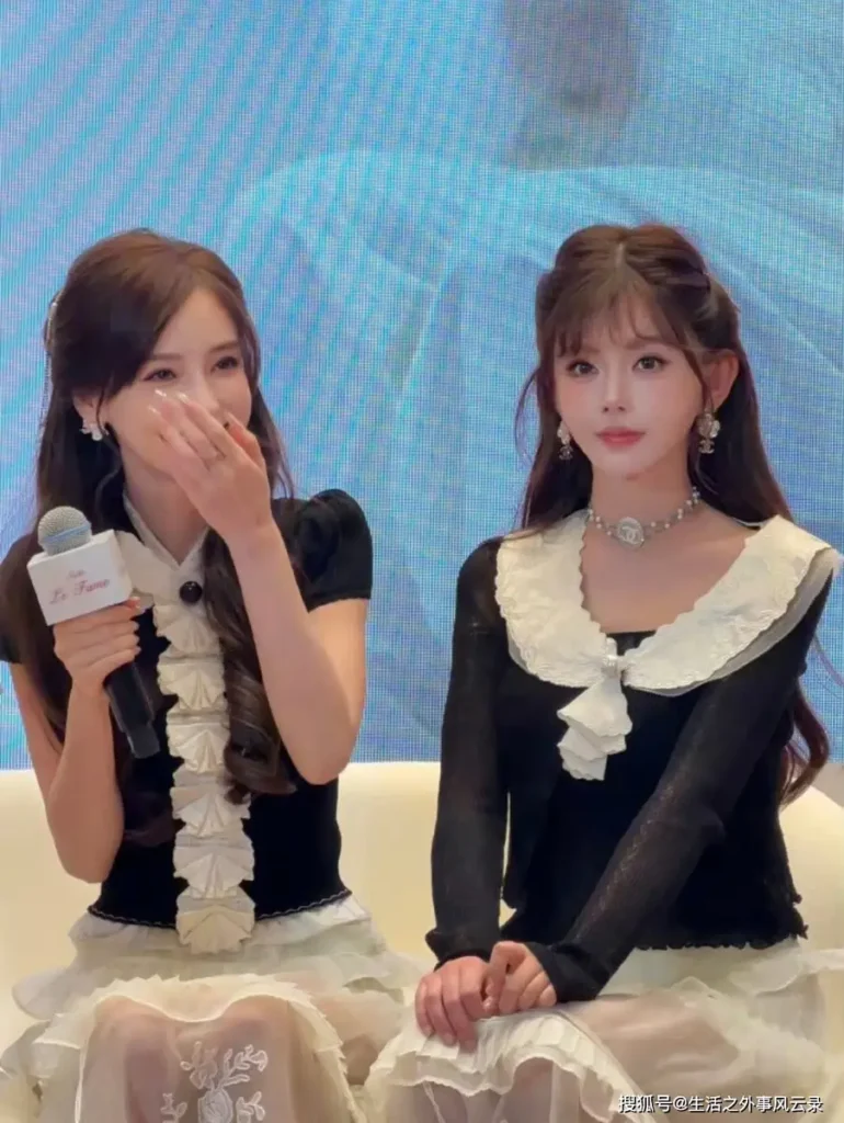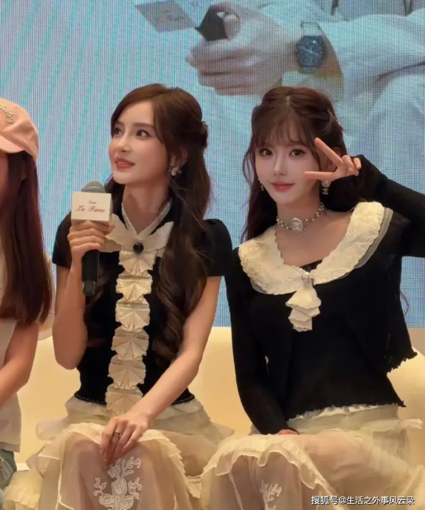 At the event, the two were also noted to be wearing highly similar outfits—black tops with white accents paired with white-trimmed skirts—further amplifying the sense of visual overlap. This combination of resemblance in both styling and facial features led some viewers to comment on the “mirror-like” effect, while Han Anran herself humorously remarked that standing next to Angelababy (Yang Ying) made her feel like a “subordinate version.”